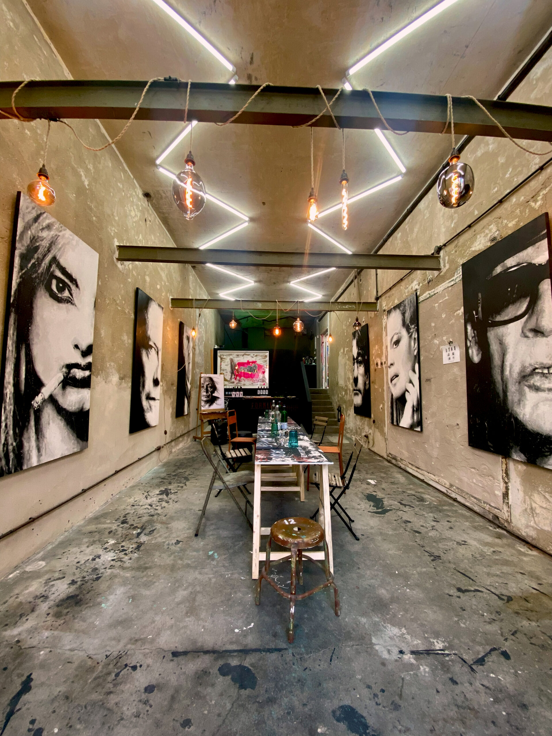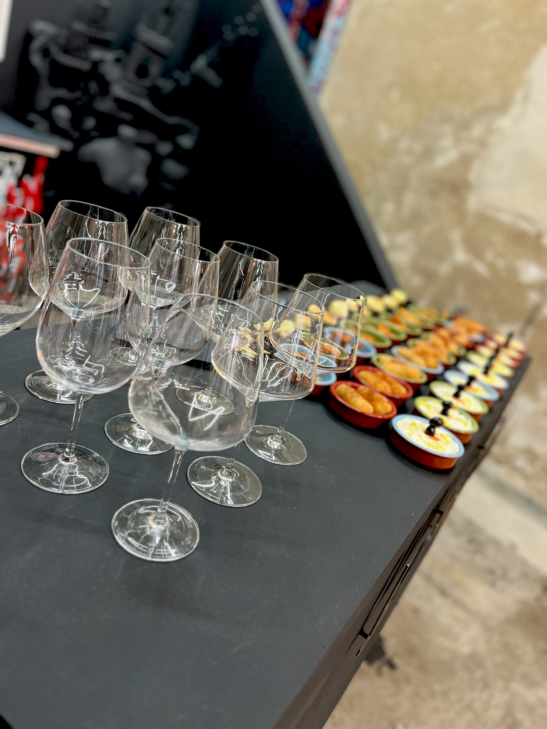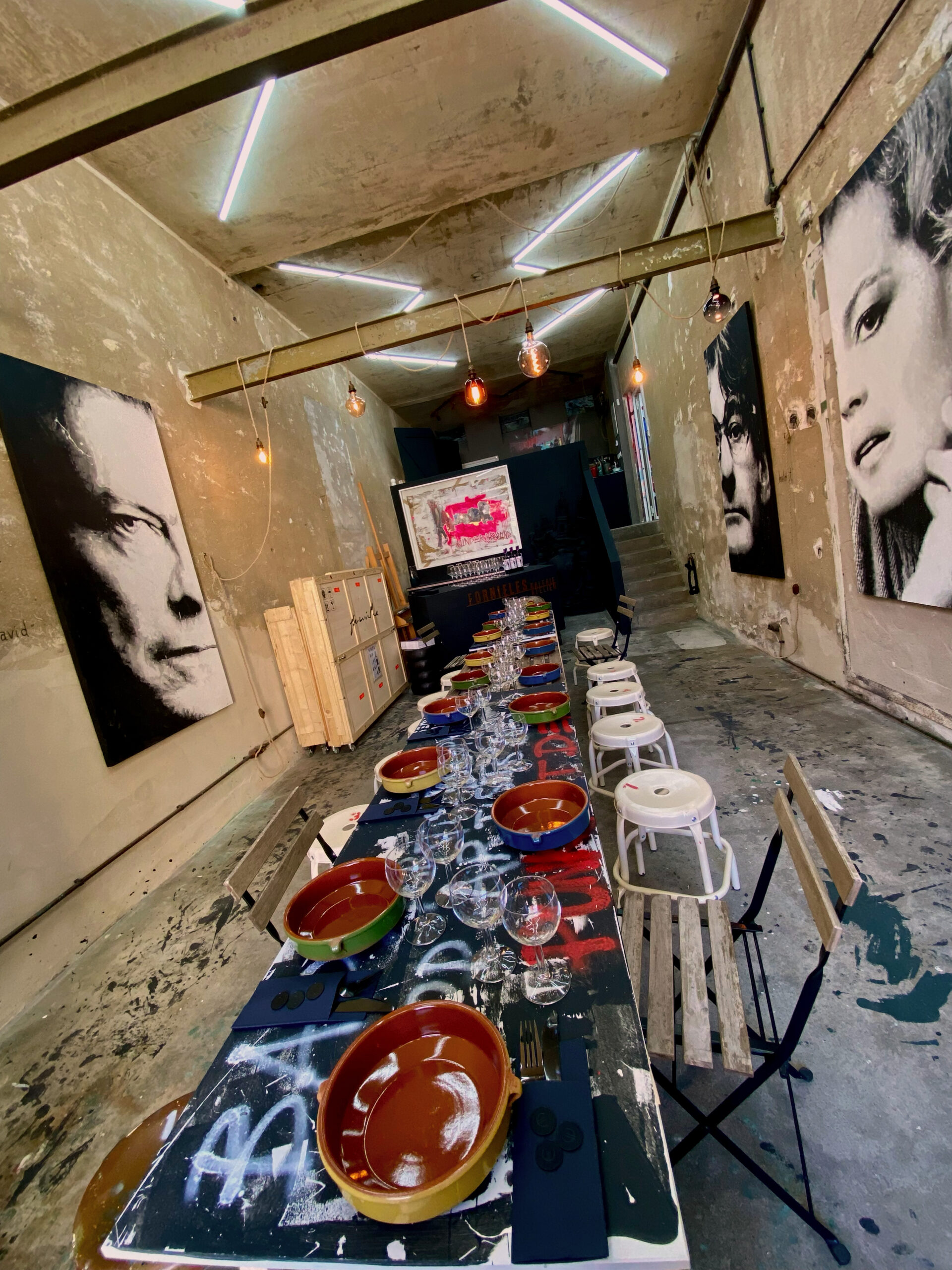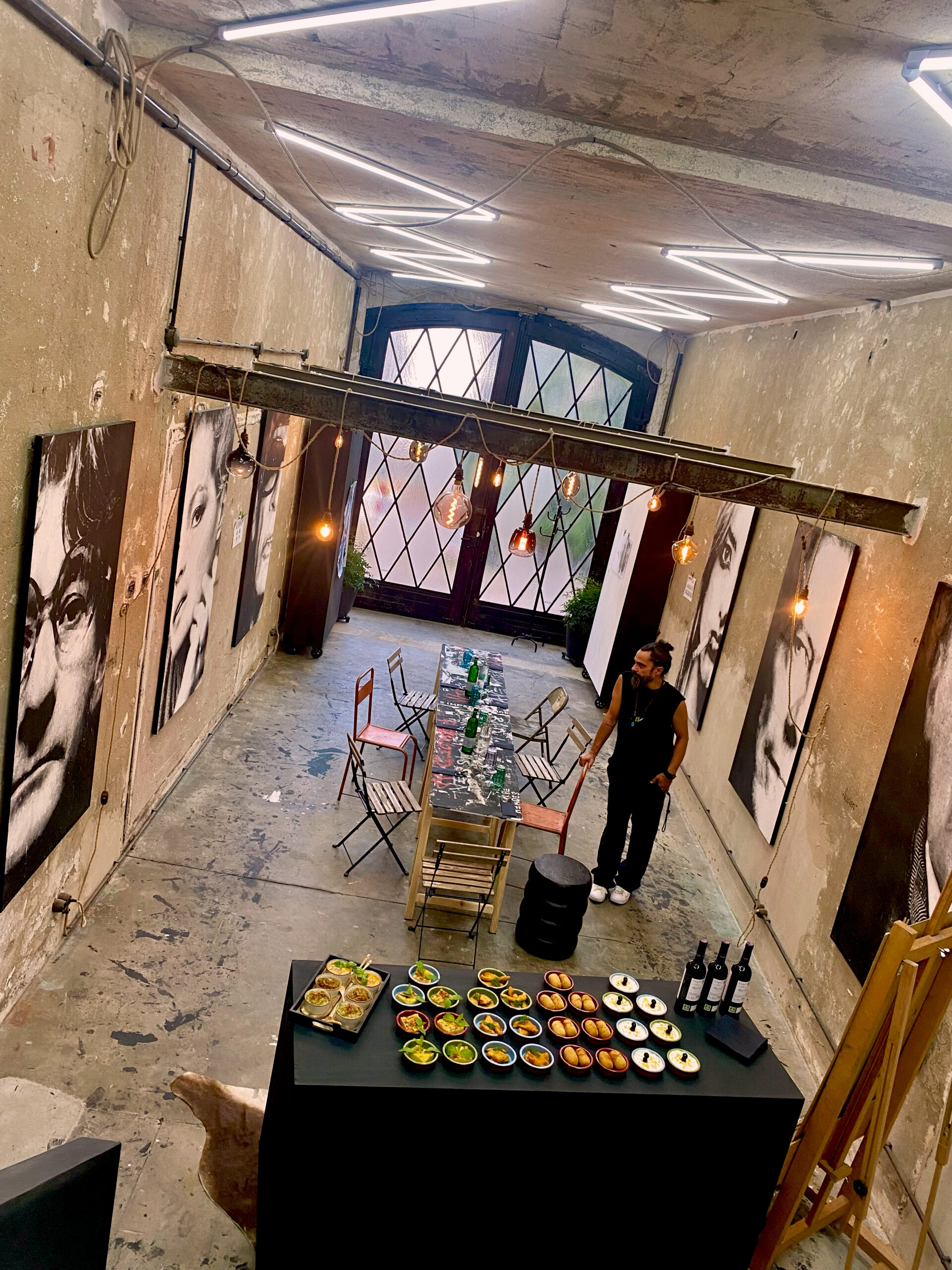 The event is private, for a maximum of 6 people and consists of a guided tour of the current exhibition in the studio on the ground floor by the artist and a visit to the showroom on the first floor with a 6-course tapas menu, 0.2 L red wine DOCaRioja (Bodegas Campillo), 0.2 L Vinho Verde Blanco and 0.2 L Vinho Verde Rosé. Duration 2 hours. Price p/p 45€ and only with registration here below. Cancellations or changes to participation must be made at least 48 hours in advance in writing to our e-mail address. Please also let us know when it suits you best: